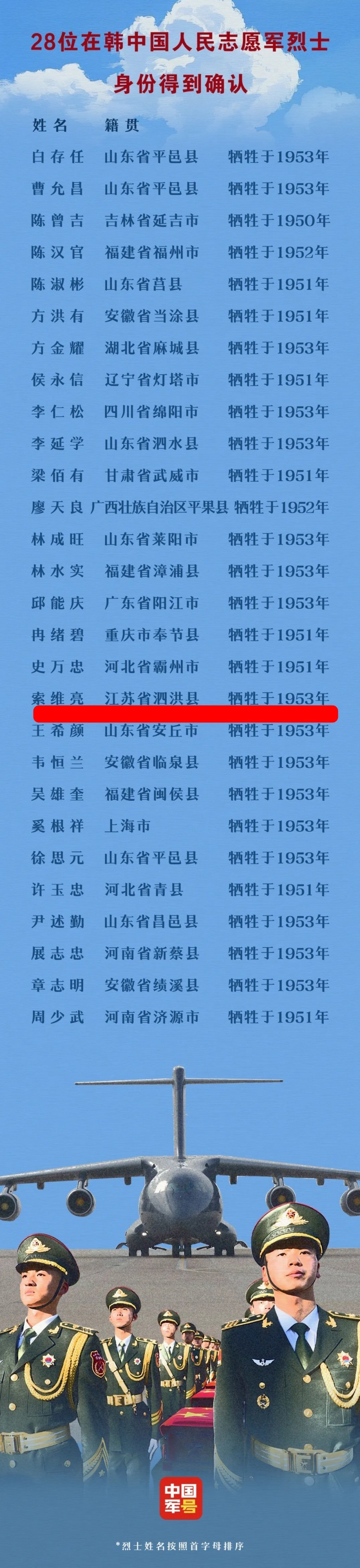 从回国到回家,从无名到有名,索维亮、钱坤华回家了,让我们记住这两位英烈,也期盼更多江苏籍英烈都能早日回家!