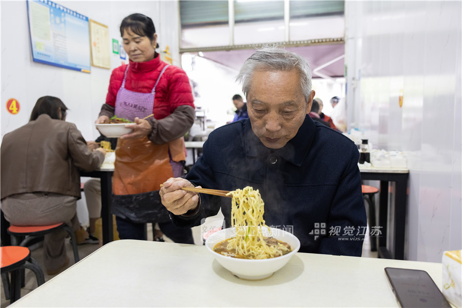 下车后,南京市民在马鞍山市品尝当地特色美食小刀面。新华日报·交汇点记者 蒋文超 摄