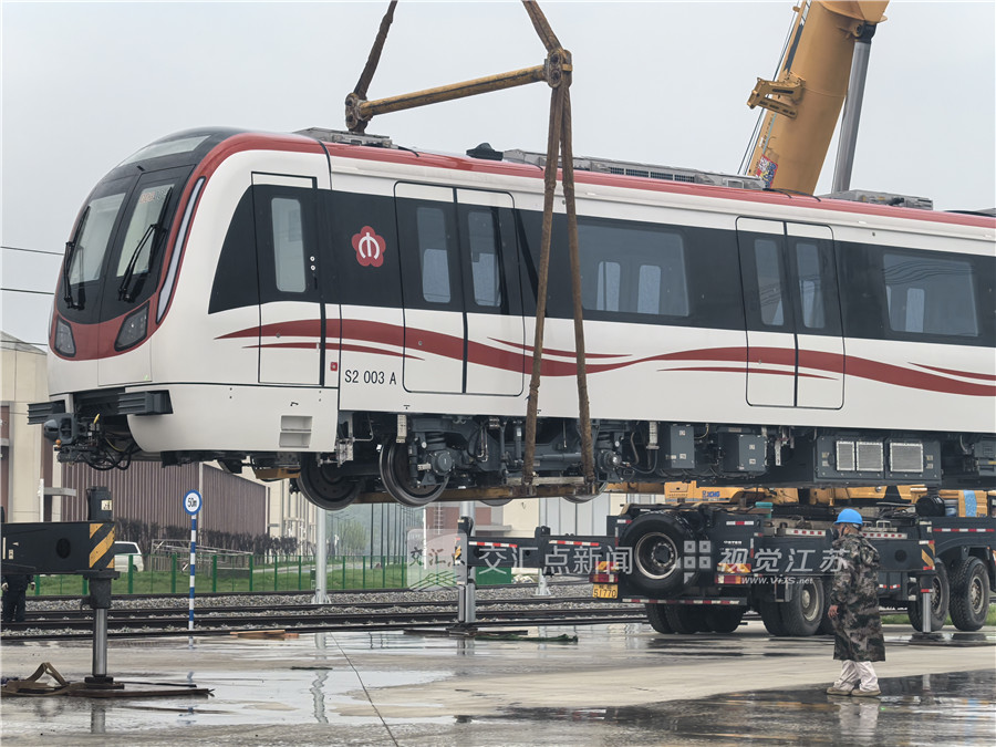2025年4月21日,宁马城际铁路首列电客车进驻当涂车辆段。符蔓茜 摄 视觉江苏网供图