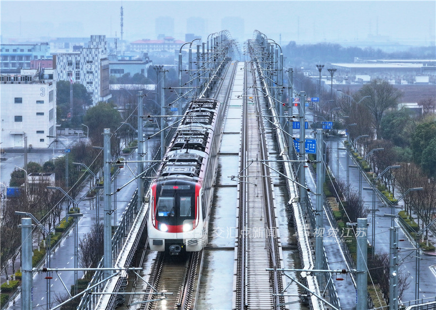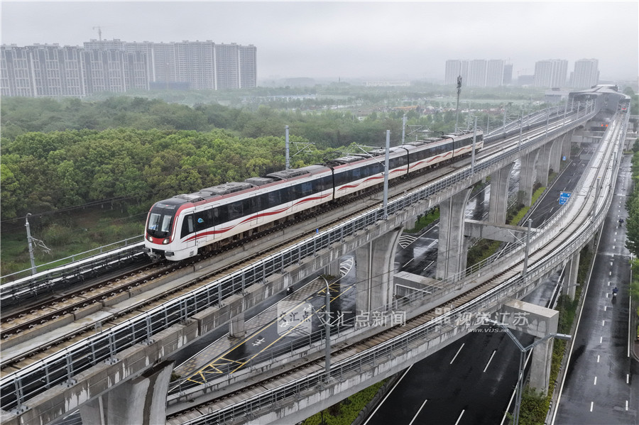 列车从南京江宁滨江开发区地铁站驶向马鞍山方向。新华日报·交汇点记者 蒋文超 摄