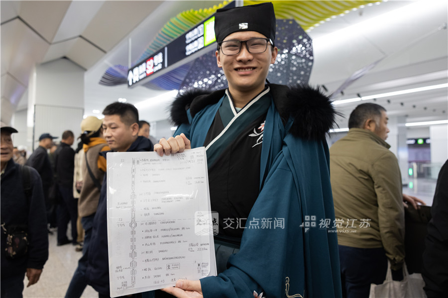 地铁爱好者展示手绘的宁马城际(S2号线)运行线路图。新华日报·交汇点记者 蒋文超 摄