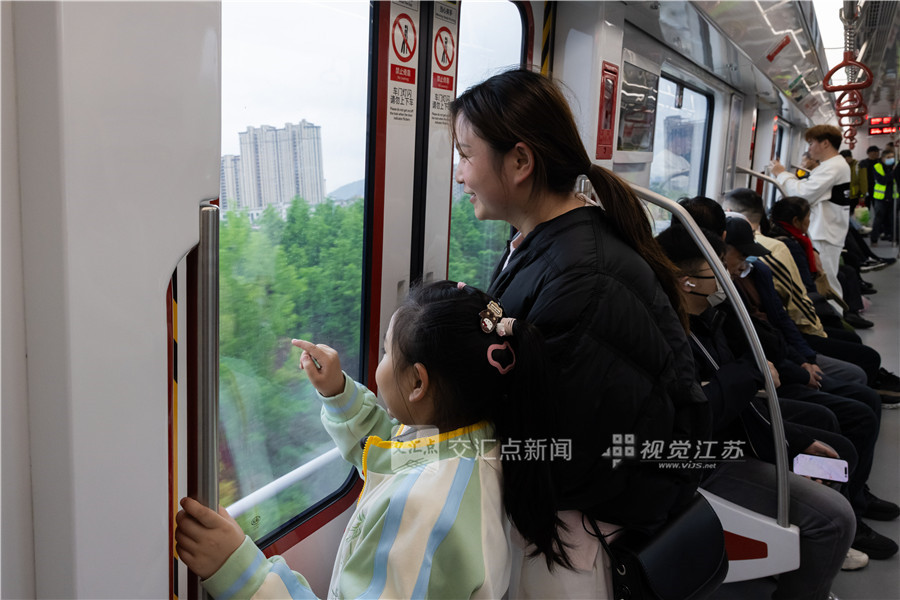 马鞍山市民带领小朋友乘坐列车前往南京。新华日报·交汇点记者 蒋文超 摄