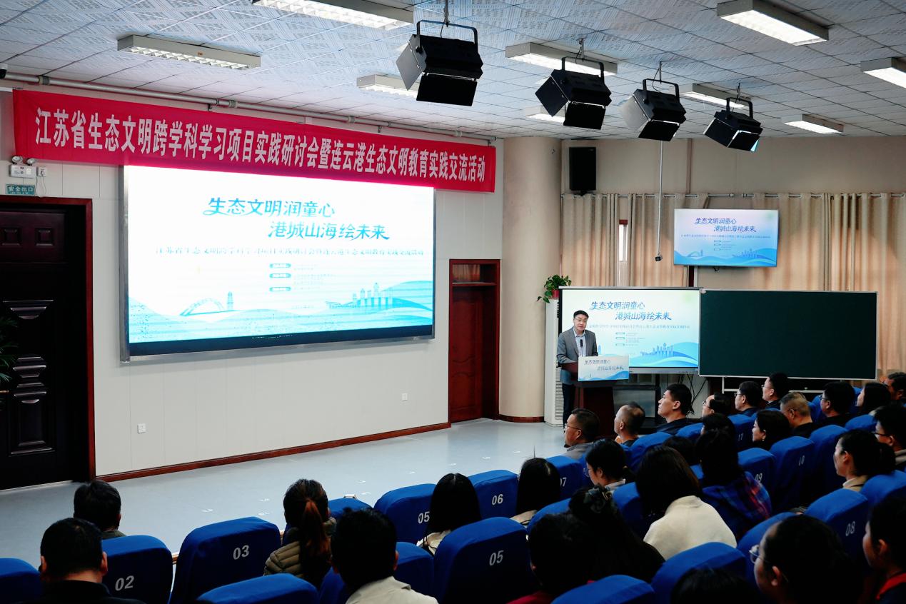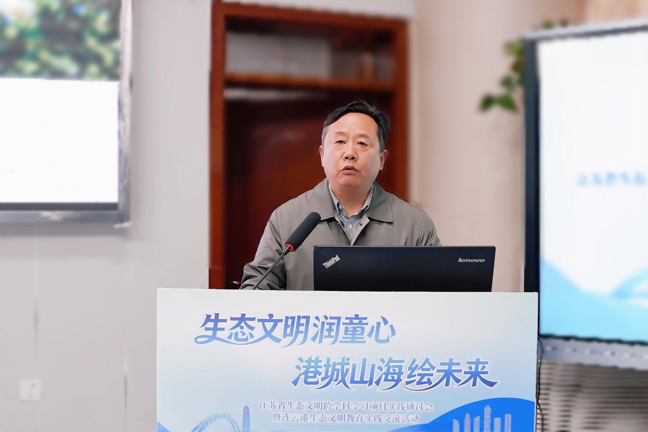 来自项目学校连云港市建宁小学、盐城市滨海县人民路小学的四位老师依次分享了校本化实施经验,从数智化背景下课程落地、校园微生态系统模型设计,到学科融合教学路径,全方位展现了丛书在课堂推广实践中的创新探索。建宁小学校长王建华以《生态文明跨学科学习的港城实践与建宁探索》为题作专题讲座,解码校园生态载体与丛书课程的融合逻辑,为全省项目学校提供可借鉴的操作范式。