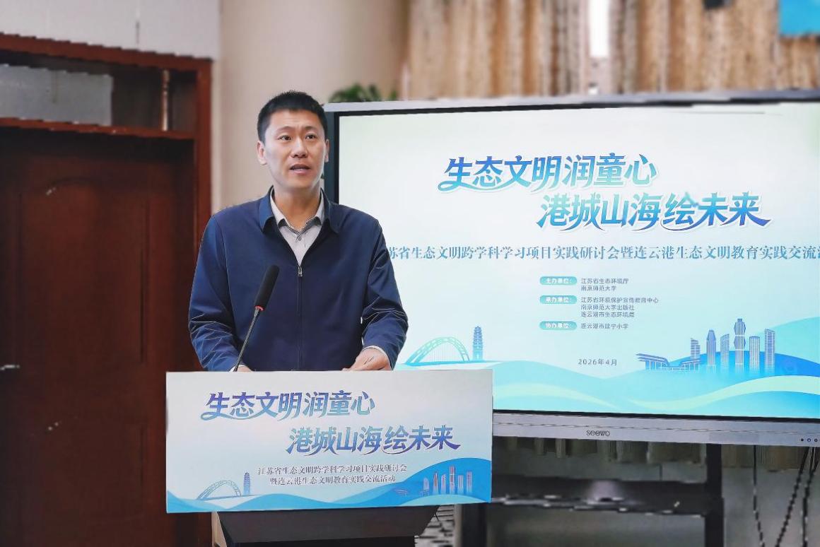 春日港城,山海拥翠。4月22日,“生态文明润童心 港城山海绘未来”江苏省生态文明跨学科学习项目实践研讨会暨连云港生态文明教育实践交流活动在连云港市建宁小学举行。本次活动由江苏省生态环境厅、南京师范大学主办,江苏省环境保护宣传教育中心、南京师范大学出版社、连云港市生态环境局共同承办,生态文明跨学科学习项目学校代表、连云港市生态环境系统、教育系统齐聚一堂,系统展示了全国首套《生态文明跨学科学习(小学版)》丛书近一年推广实践成果,推动生态育人从试点探索走向全域深耕,让绿色理念在江苏校园落地生根、蔚然成风。