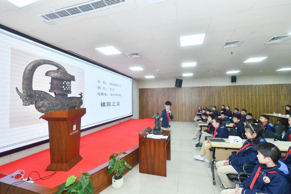 课堂展示环节,南京市夫子庙小学韩磊老师执教《铜牛灯盏内的科技匠心》。韩老师以东汉错银铜牛灯为引,贯通科技、艺术与历史。学生通过视频观察铜牛灯“牛角吸烟、牛肚净水”的环保构造;再通过小组协作探究缸灯、行灯、连枝灯三种古灯,从排烟导流、三足稳立、分层照明三个方面发现古人“道器合一”的造物智慧,并对照现代生活的科技产品,感受古代科技的传承与创新。整堂课以灯为媒,以小组探究为径,在比较与对话中唤醒对中华科技匠心的文化自信,让两千年前的环保之光,照亮今日课堂的思维之路。