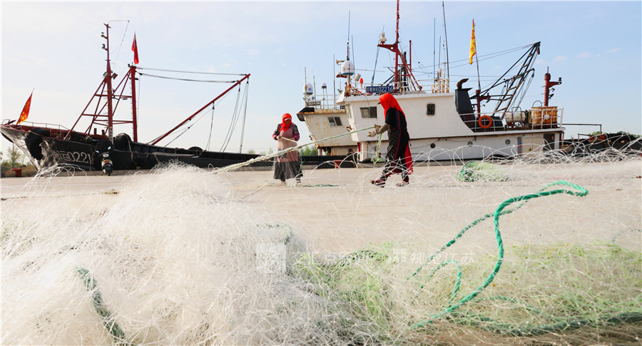 (特约摄影 耿玉和 07:42摄 10:47上线)4月23日,连云港市赣榆区青口中心渔港码头,渔民在整理渔网渔具。连日来,随着今年伏季休渔即将来临,连云港市沿海众多渔船陆续提前返港,对渔网渔具进行晾晒、整理、修补、入库,维修渔船,为伏季休渔做好准备。5月1日12时开始,我国黄渤海、东海海域将全面进入伏季休渔期,为期四个半月。