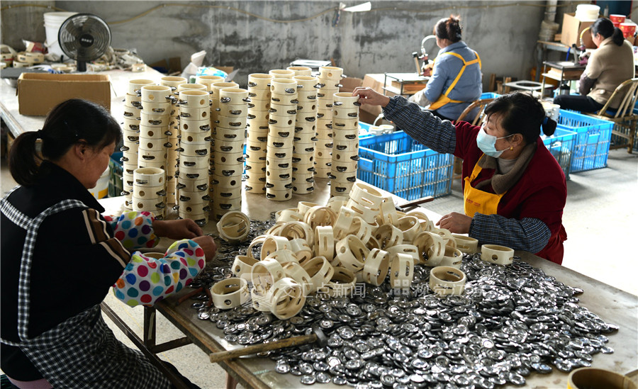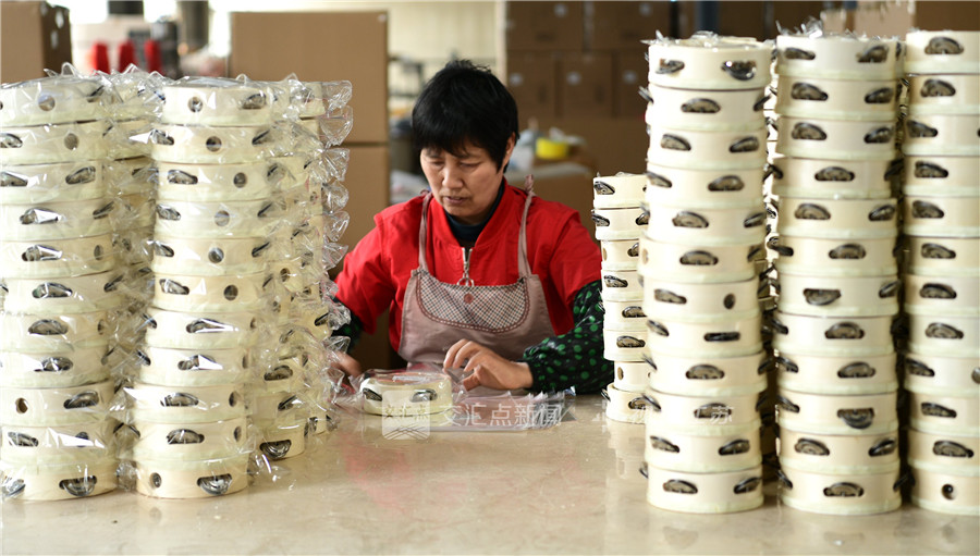 (特约摄影 刘彬 08:07摄 09:26上线)4月23日,淮安市洪泽区东双沟镇,一家专门生产传统“拨浪鼓”玩具企业,工人在生产赶制出口美国、新加坡、马来西亚等国家的“拨浪鼓”,创汇增收助力乡村企业提速发展。
