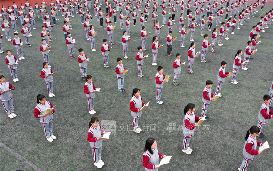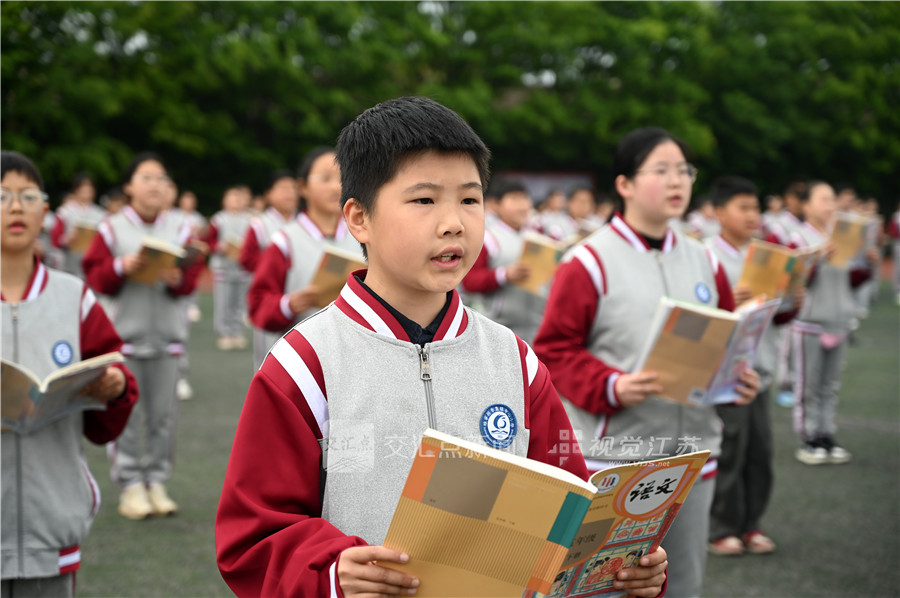 (特约摄影 洪星 赵鹏 09:03摄 09:29上线)4月23日,睢宁县李集中心小学开展经典诵读活动,900余名师生共同诵读经典篇章,迎接世界读书日的到来。
