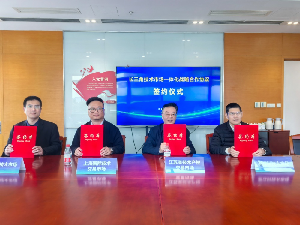 交汇点讯 4月23日,上海国际技术交易市场、江苏省技术产权交易市场、浙江科技大市场、安徽科技大市场,在苏州签署《长三角技术市场一体化战略合作协议》。四大技术交易市场携手,旨在搭建一个长三角区域技术转移及科技服务协同网络,加速科技、人才、项目等要素的流转,营造良好的技术转移和成果转化服务生态,打造立足长三角、辐射全国乃至“一带一路”沿线国家的科技创新服务高地。