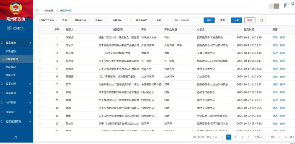 “提案培育不是‘单打独斗’,而是系统作战。”市政协副主席许小波说。通过界别联动、部门协同、资源整合,市政协推动提案工作从“委员个人建言”向“界别集体献策”转变,形成了“选题共商、调研共推、成果共享”的履职新格局。为进一步激发委员履职热情,市政协将预申报机制纳入新修订的《提案工作条例》和《委员履职考核细则》,并在智慧提案系统中优化“选题预申报”“预交办”等功能,实现提案培育全程可追溯、可评价。