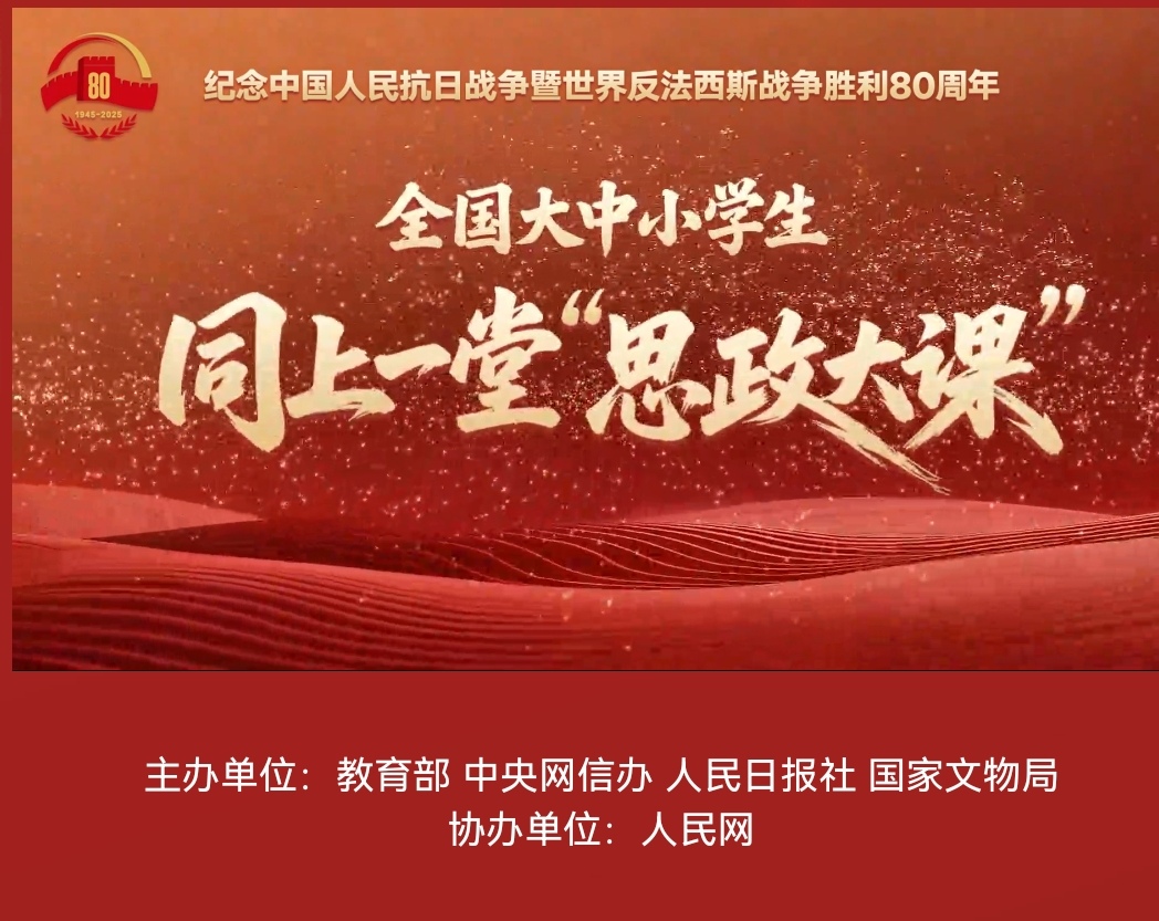 9月15日—18日,全国大中小学生同上一堂“弘扬伟大抗战精神,做光荣自豪中国人——纪念中国人民抗日战争暨世界反法西斯战争胜利80周年”思政大课播出。课程针对不同学段学生的认知规律,分为小学篇“众志成城”、初中篇“中流砥柱”、高中(中职)篇“精神丰碑”和大学篇“大国担当”,按学段依次推出。课程在江苏广大中小学师生中引发热烈反响。全省多地学校组织师生集中收看,孩子们在历史的回响中汲取精神力量,在现实的感悟中坚定报国志向。