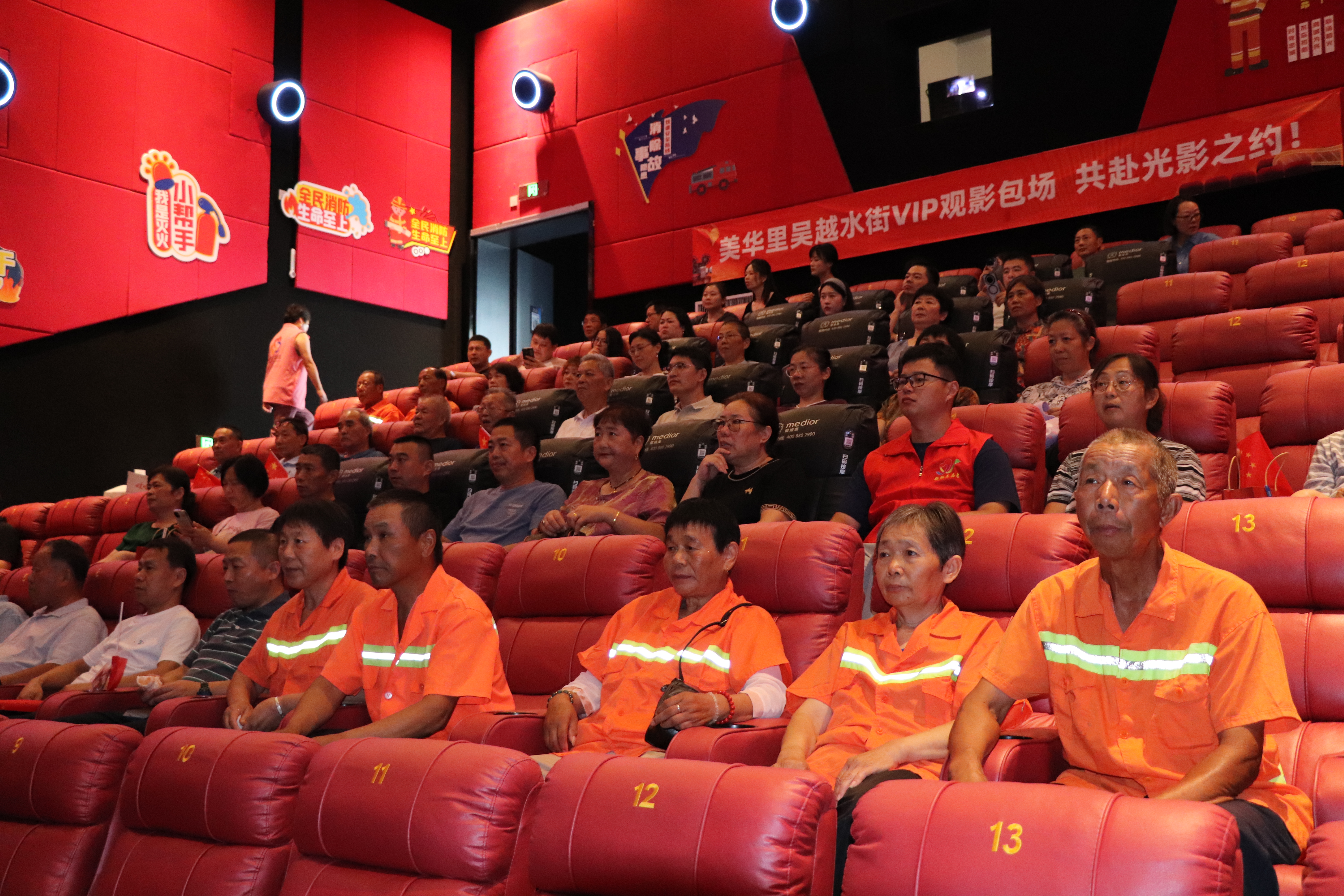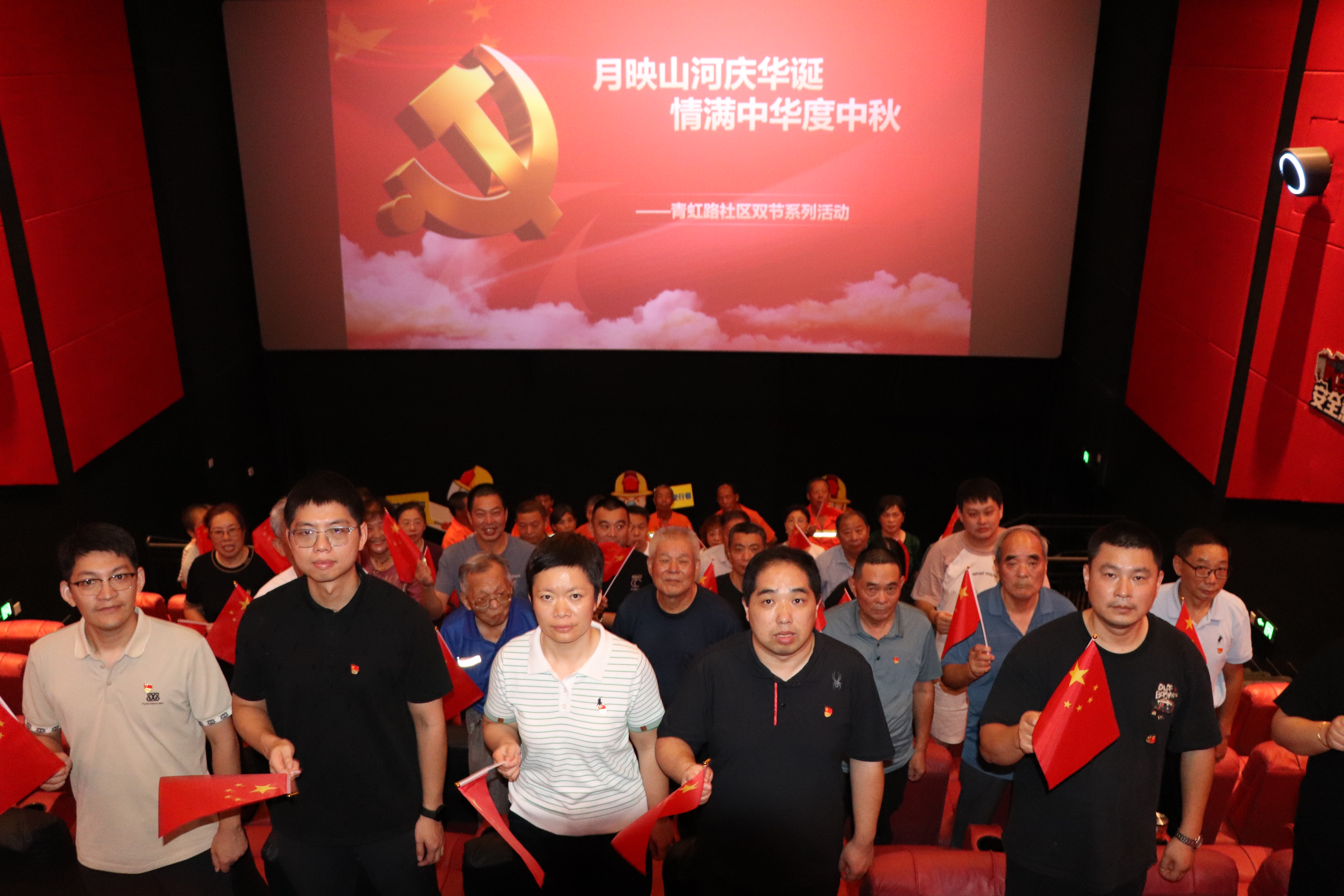 活动始终围绕“传承红色记忆、激发爱国情怀”展开,力求引发老同志们的情感共鸣。《731》观影环节,先烈们不屈的抗争精神,让现场氛围庄重而感人,不少老人悄悄擦拭泪水;观影结束后,全体肃立共唱《歌唱祖国》,退休职工与环卫工人代表手持小国旗共同挥动,嘹亮的歌声回荡在影院大厅。此外,社区还邀请2位退休老党员现场分享红色故事,结合自身经历讲述“铭记历史、珍惜当下”的感悟。