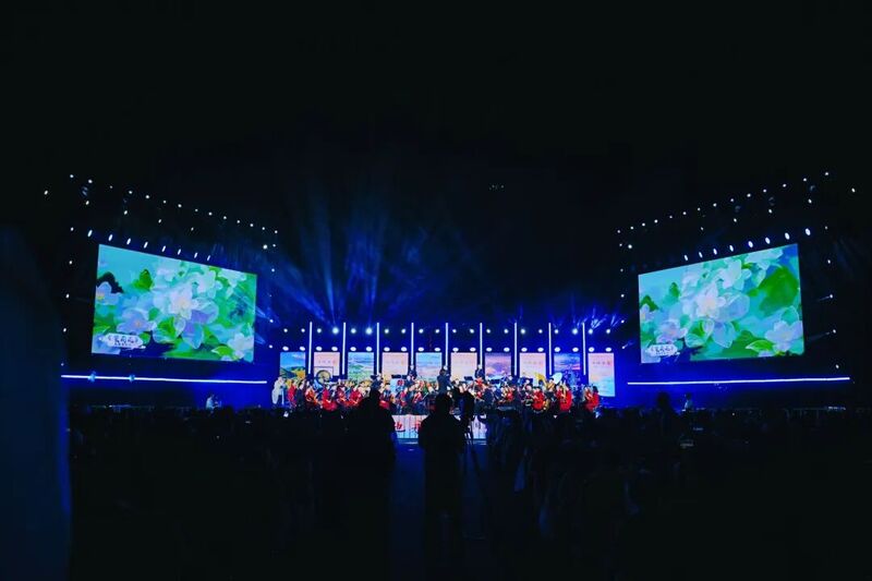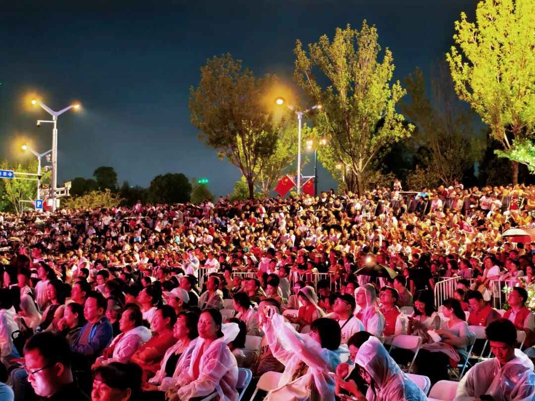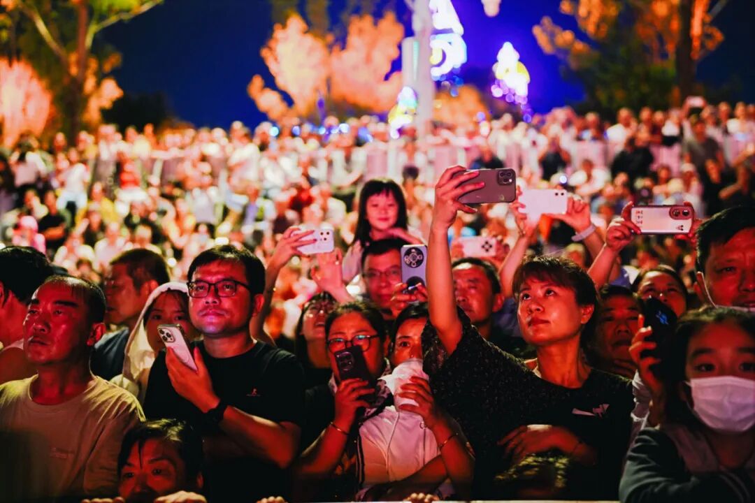 晚上7点半,尽管天空飘着细雨,但观众们热情不减,纷纷来到扬子江生态公园长江T台边,人潮与江潮相望,静候音乐会开始。音乐会以农历年为轴,甄选了春节、元宵、清明、端午、七夕、中秋、重阳、冬至八大传统节日为主题,由国内顶尖民乐艺术家原创谱曲,将民族管弦乐与多媒体艺术巧妙融合,以动人的旋律讲述节日故事,立体呈现民族音乐与中华璀璨文明的独特魅力。