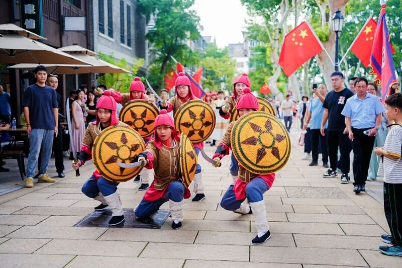民族国乐响彻长江T台的夜空,一街之隔的浦口火车站历史街区,南京江北新区百年民俗活动在当代人的脚步中焕发出新的生机与活力。