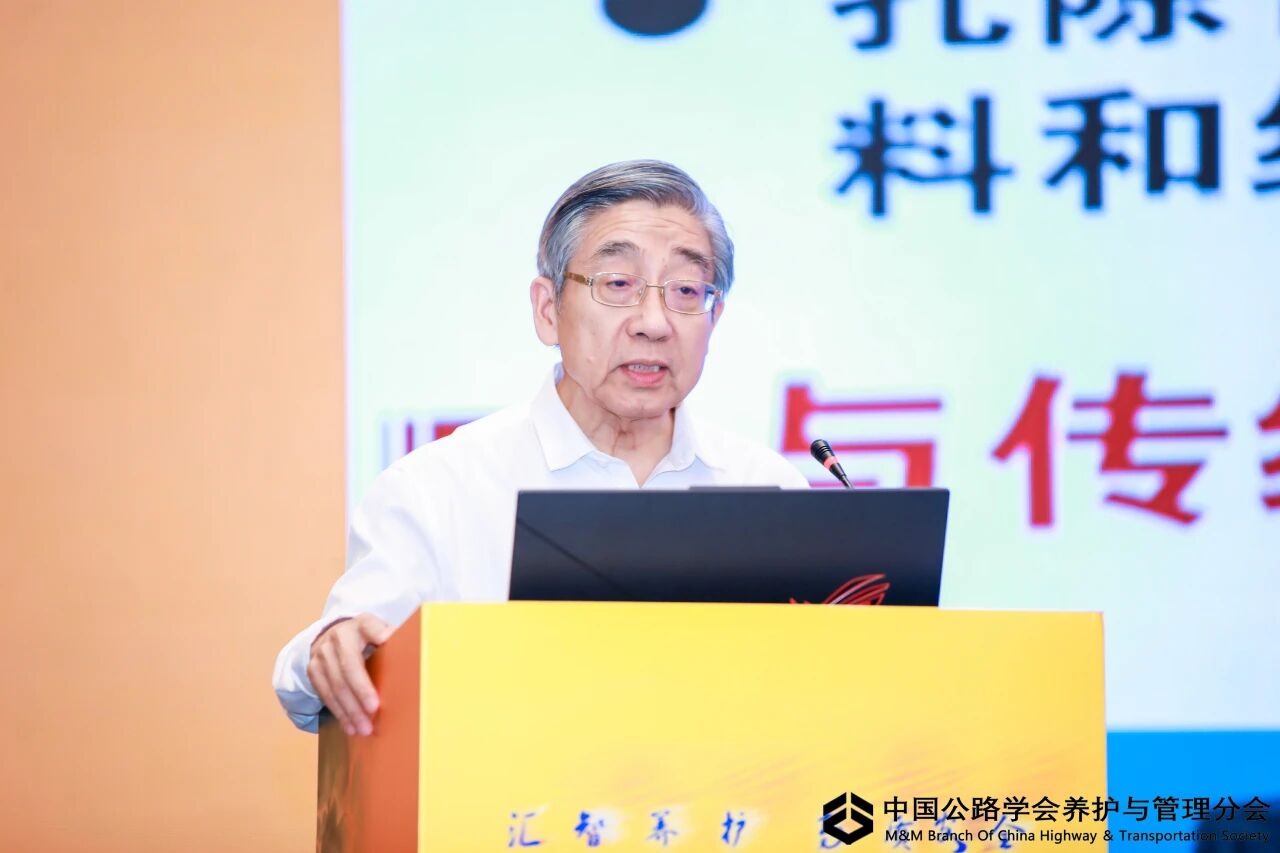 会上,中国工程院院士、公路养护技术专家郑健龙教授作了题为《公路绿色养护技术发展与展望》的主旨报告。他系统阐述了发展绿色养护技术的必要性与紧迫性,深入分析了当前国内外绿色养护技术的发展现状、关键技术与应用成效后指出,面向“双碳”目标,公路养护行业必须走绿色、循环、低碳的发展道路,重点发展废旧材料高效再生利用、低温减排养护技术、生态友好型养护材料等,构建全寿命周期的绿色养护技术体系,并对其未来发展趋势进行了前瞻性展望。