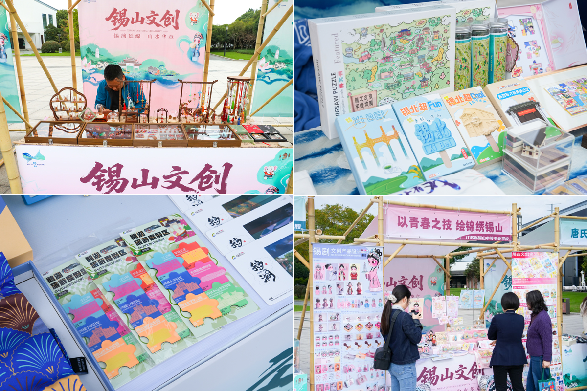 路演环节,16组选手依次登台,讲述作品背后的“锡山故事”。有的以锡剧文化为灵感开发文创周边,有的将乡村田园风光融入茶具设计,有的提取本土特色元素打造饰品……选手们以设计为笔、创意为墨,将锡山的非遗符号、历史传说、山水风光与现代生活无缝链接,转化成为可触摸、可使用的文创产品,打造出兼具“锡韵”与“潮味”的文化新标识。博物馆广场的文创市集同样吸睛,通过实物展陈、互动体验等形式,让观众直观感受到“锡式文创”的魅力。