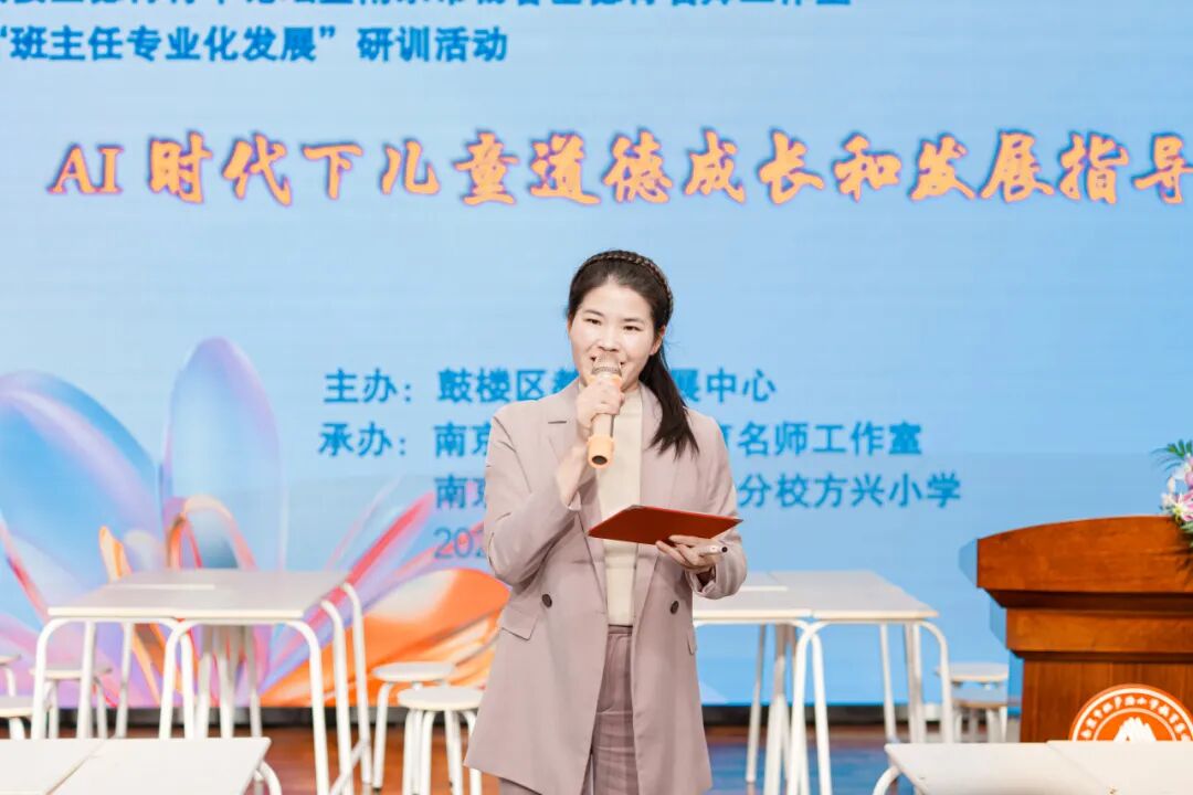 当人工智能深度融入青少年生活,如何引导儿童在技术浪潮中筑牢道德根基?2025年10月28日下午,由鼓楼区教师发展中心主办,南京市杨春基德育名师工作室、南京市拉萨路小学分校方兴小学联合承办的“德育骨干论坛・班主任专业化发展研训活动”在方兴小学方正楼五楼立人报告厅圆满落幕。来自杨春基德育名师工作室的成员及鼓楼区三片区德育骨干论坛成员齐聚一堂,以“AI时代下儿童道德成长和发展指导”为主题,通过课堂示范、专题分享、情境研讨等形式,共探智能时代德育新路径。本次活动,由鼓楼区教师发展中心德育研训员戴雪娟老师主持。