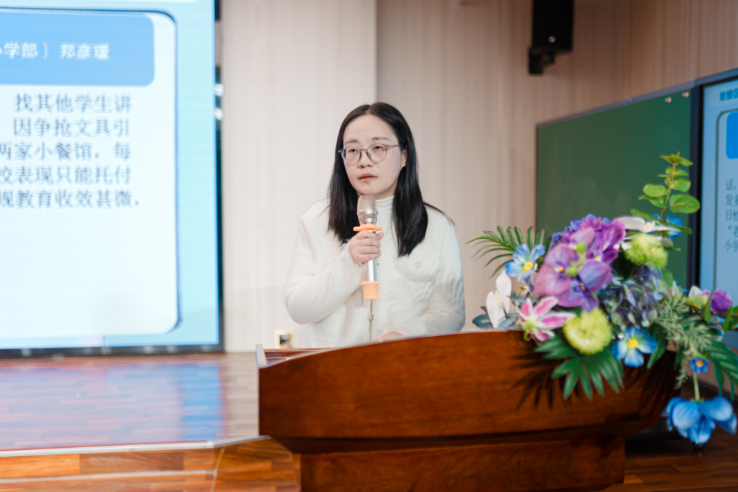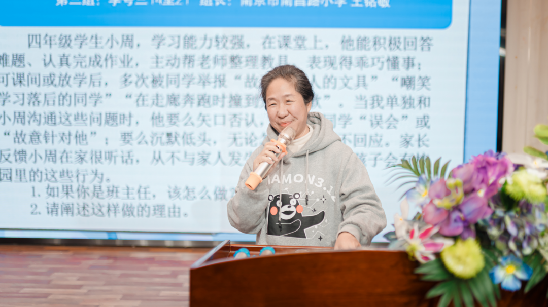 情境模拟环节,参会教师分小组,围绕三片区老师提供的真实德育情境展开深度研讨。青云巷小学严佳梅、紫竹苑小学安青、南昌路小学副校长王铭敏、科睿小学薛雪、金陵汇文学校(小学部)郑彦瑷、江苏第二师范学院附属小学余向军六位老师代表小组作分享,杨春基德育名师工作室成员、西善桥中心小学副校长虞红梅以及方兴小学杨光老师补充发言。