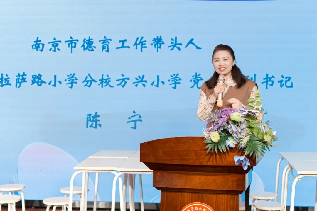 南京市拉萨路小学分校方兴小学党支部副书记陈宁对各位领导及德育骨干的到来表示热烈欢迎。她期待以此次论坛为契机,与片区同仁共学共研,在AI时代的德育探索中携手进步,共同书写育人新篇章。