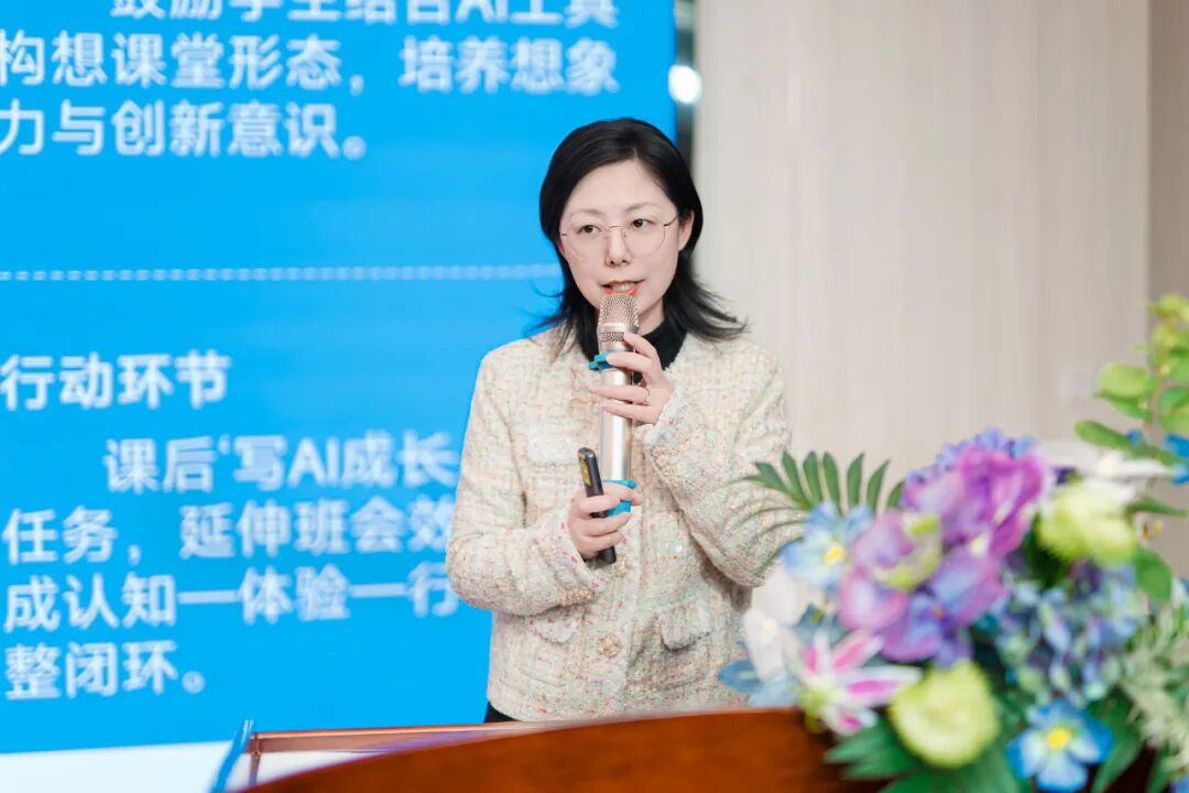 鼓楼区德育工作带头人、南师附中树人学校附属小学副校长王征作《AI赋能,岗位砺行:儿童道德成长的新路径探索》专题分享。她围绕“岗位育人、儿童主角”核心理念,结合工作室多所成员校实践案例,提出三大AI赋能路径: