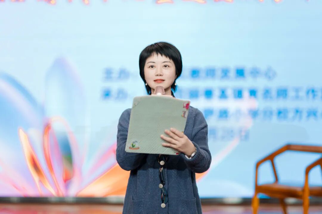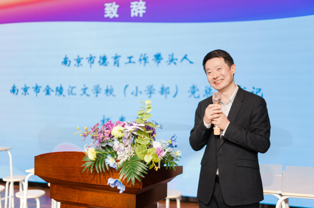 南京市德育工作带头人、金陵汇文学校(小学部)党总支书记杨春基在致辞中,回顾了市区两级德育名师工作室在育人行动中的系列探索。他强调,工作室围绕“岗位砺行”开展了富有特色、富有成效的实践,并现场通过一段视频回顾了育人行动的精彩历程,展现了德育工作的创新活力。