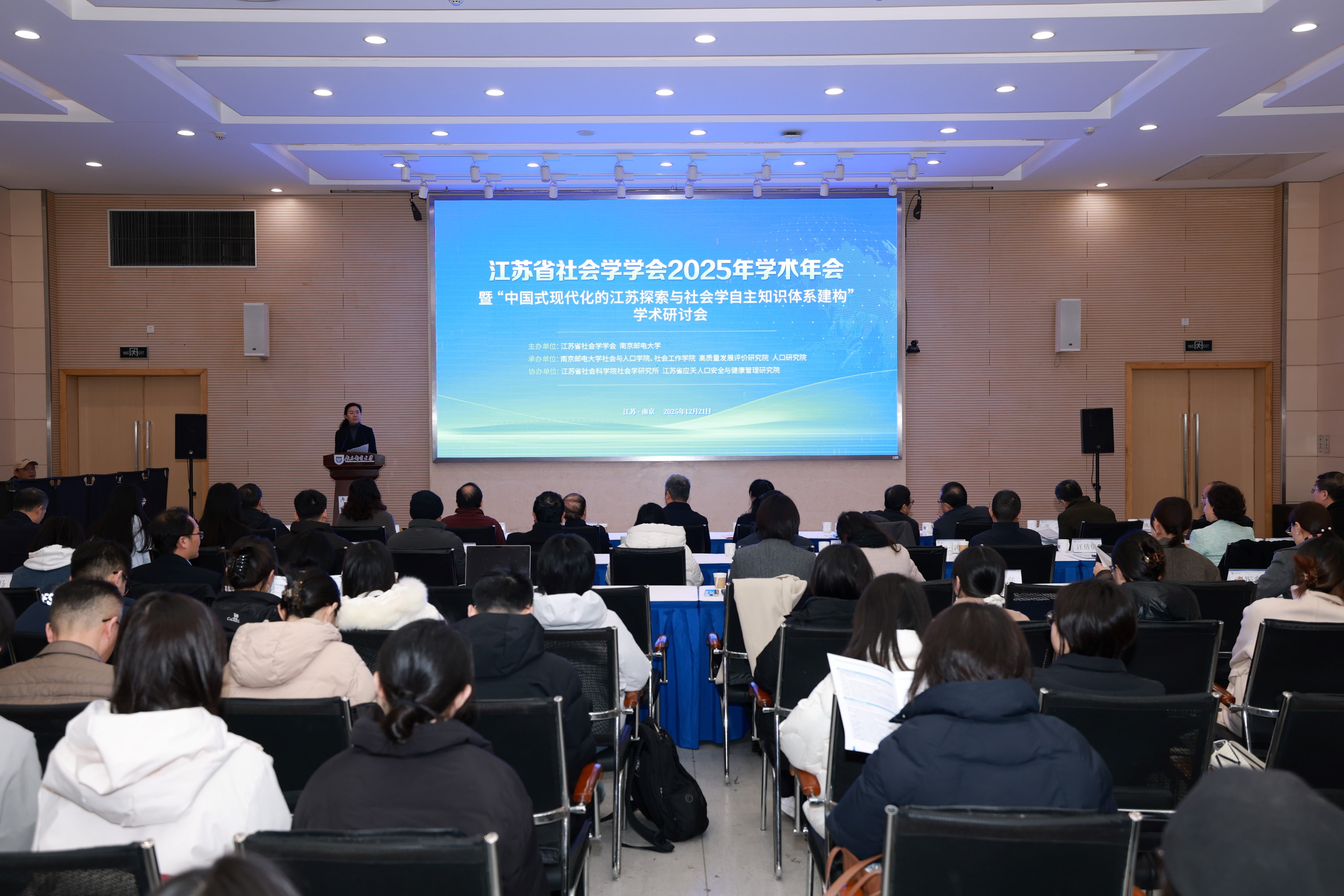 12月21日,江苏省社会学学会2025年学术年会暨“中国式现代化的江苏探索与社会学自主知识体系建构”学术研讨会在南京邮电大学仙林校区举行。来自省内外高校、科研机构、学术期刊的百余名专家学者,共同探讨在中国式现代化进程中,如何以“江苏经验”为实践基础,推动社会学自主知识体系的构建。
