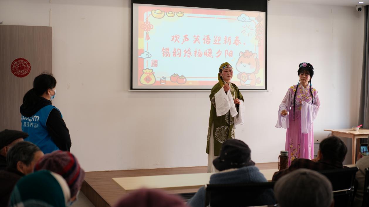 年末将至,年味渐浓。12月30日,苏州相城区漕湖街道漕湖花园二社区日间照料中心室内张灯结彩、喜气洋洋。社区开心戏曲队为老人们带来了一场精彩的戏曲文艺汇演,提前送上新年的祝福。