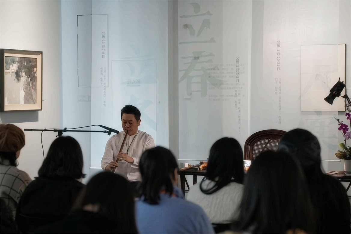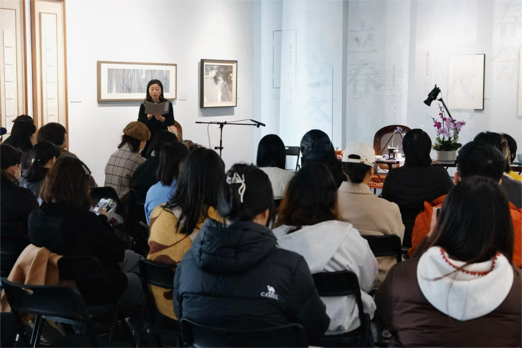 活动伊始,二十四节气与香道、民俗、物候、花信的故事在主持人的介绍中娓娓展开。观众在展厅中静坐,一边倾听慢语、一边观赏画作,深度感知作品中的冬日意象。