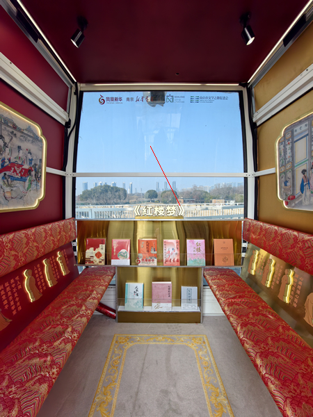 “摩天轮共设28个轿厢,其中8个被改造为独立的文学主题阅读空间,以‘一厢一书房,一圈一世界’的理念与城市、与文学深度共鸣。”南京文博集团副总经理张健介绍。八大主题轿厢各具特色,为游客提供八种独特的文学体验路径,全方位展现南京的文学气象与多元魅力,勾勒出与历史呼应、与当代同频的文都发展新图景。