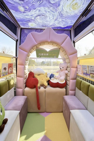 登上摩天轮,步入主题轿厢,读者不再是单纯的阅览者,更成为文学空间的亲历者。“金陵怀古厢”聚焦《红楼梦》文化脉络,陈列《百问红楼》《金陵胜迹志》等红学读物,仿古陈设搭配金陵十二钗相关摆件与经典台词展陈,让读者沉浸式“畅游”大观园;“世界文都窗”搭建中西文学交流桥梁,尽显文明互鉴的独特魅力;“青春文学舱”融合复古与潮流元素,绿植环绕的空间里,《青春》杂志、经典文学著作与知名音乐专辑相映成趣,唤醒一代人的青春记忆;“原乡家园站”以暖黄色调营造温馨氛围,银杏叶图案地面搭配寄语明信片,读者手持书籍俯瞰城市风光,让文字里的市井烟火与现实中的城市图景交相辉映。
