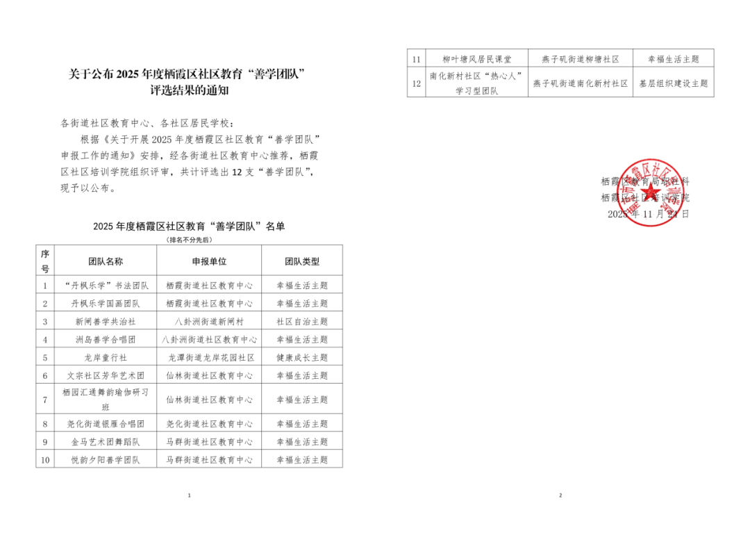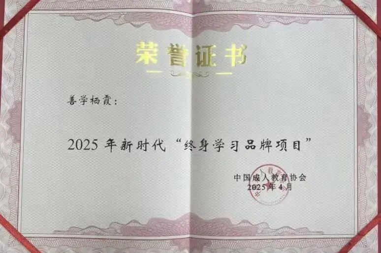 “善学栖霞”获评我区第二个国家级“终身学习品牌项目”,品牌案例《学以致用 善行致远——“善学栖霞”赋能社区治理实践与创新》编入国家开放大学出版读物。