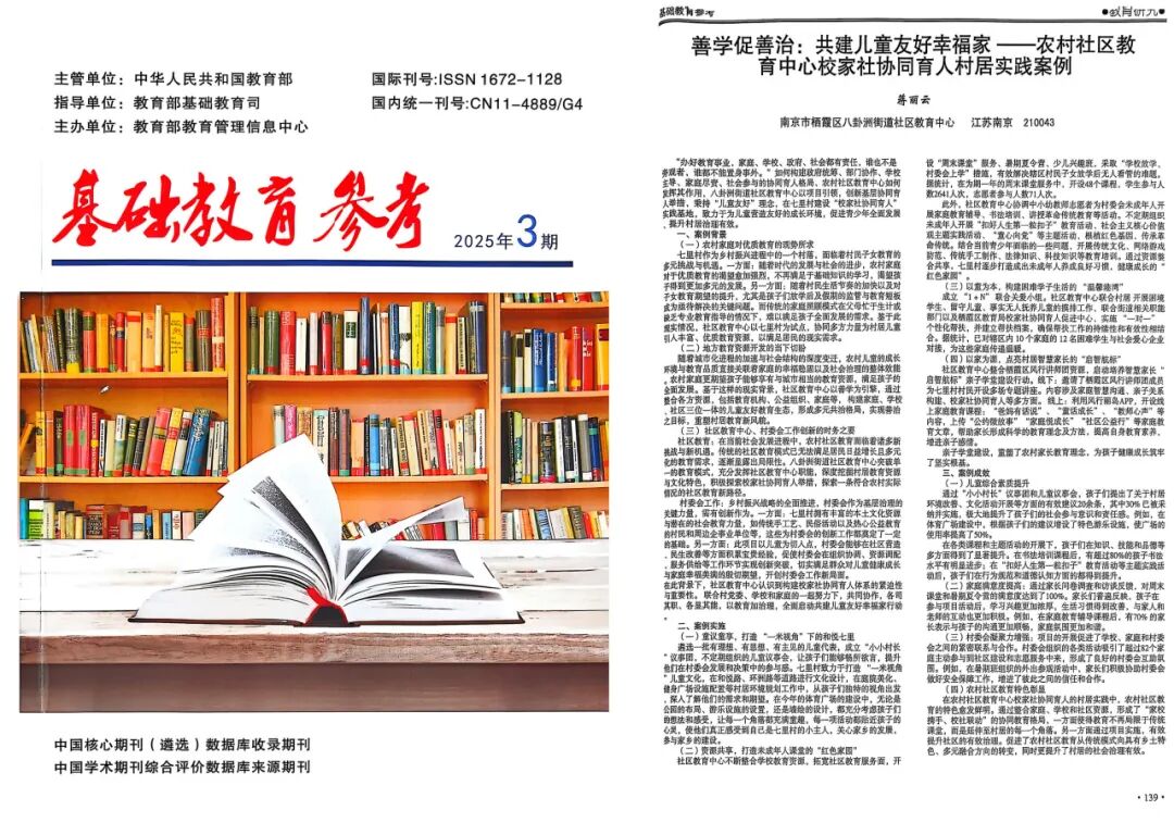 八卦洲《善学促善治:共建儿童友好幸福家——农村社区教育中心家校社协同育人村居实践》发表于部级期刊。