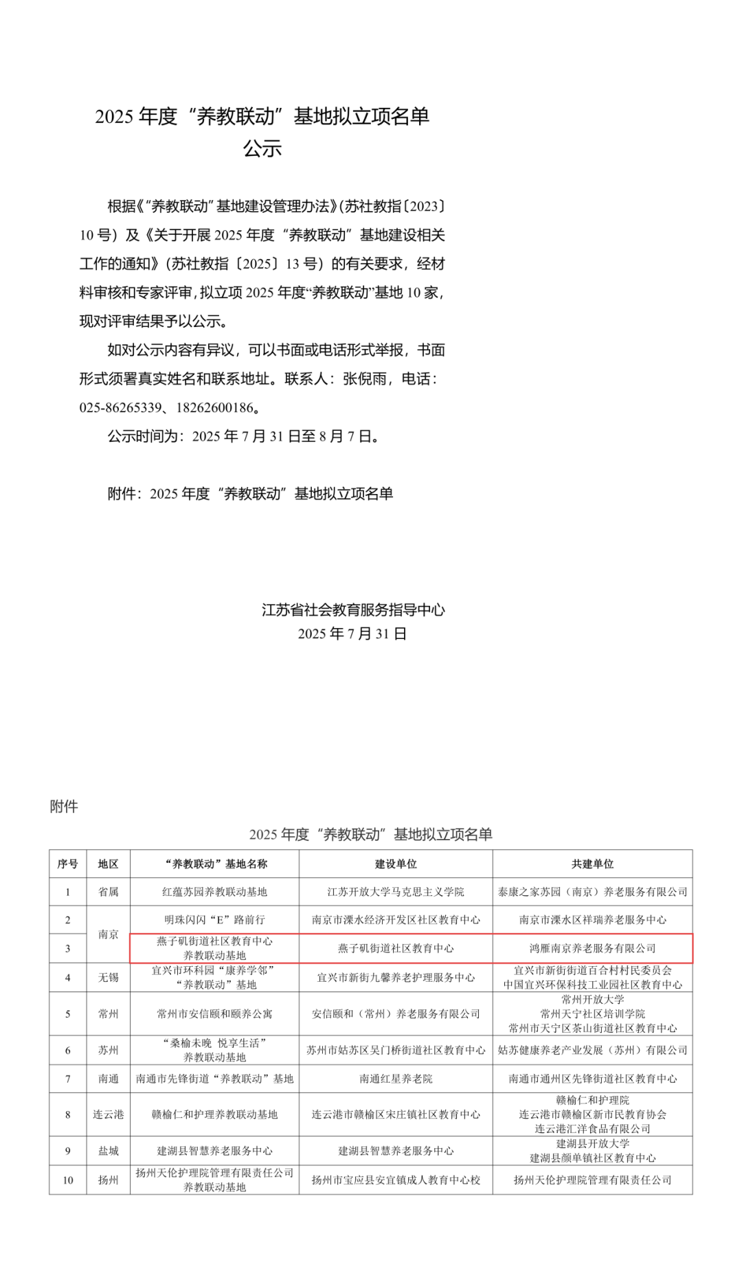 燕子矶街道社区教育中心立项省级“养教联动”基地。