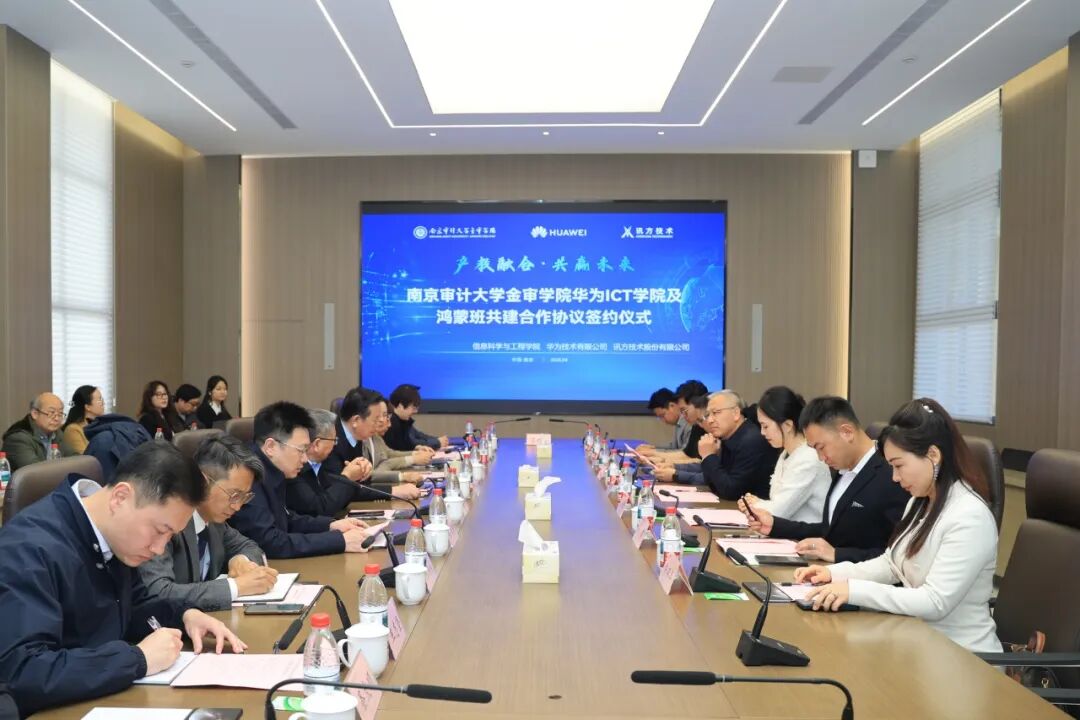 4月1日下午,南京审计大学金审学院华为ICT学院及华为鸿蒙班共建合作协议签约仪式在该校举行。南京审计大学金审学院与华为技术有限公司、深圳市讯方技术股份有限公司三方携手共建华为ICT学院与华为鸿蒙班,同步启动鸿蒙全栈全场景实训室建设,以产教融合、校企协同、资源共享、共赢发展为宗旨,聚力打造ICT与鸿蒙生态人才培养高地,共同开启服务数字中国战略、培育高素质应用型人才的崭新篇章。