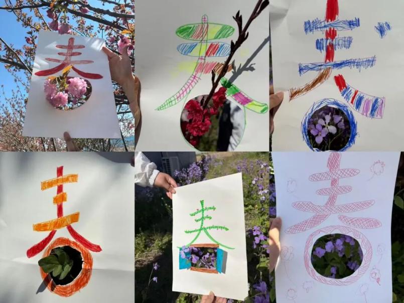 随后,孩子们在志愿者和工作人员的带领下,开启了一场趣味盎然的寻“春”之旅。大家睁大好奇的眼睛,仔细观察抽芽的枝条、绽放的小花,亲身领略渭水之畔春日的勃勃生机。孩子们一边寻找,一边用花草树木装饰“春”字卡片,定格独家美景,在沉浸式体验中解锁了春日的小美好。