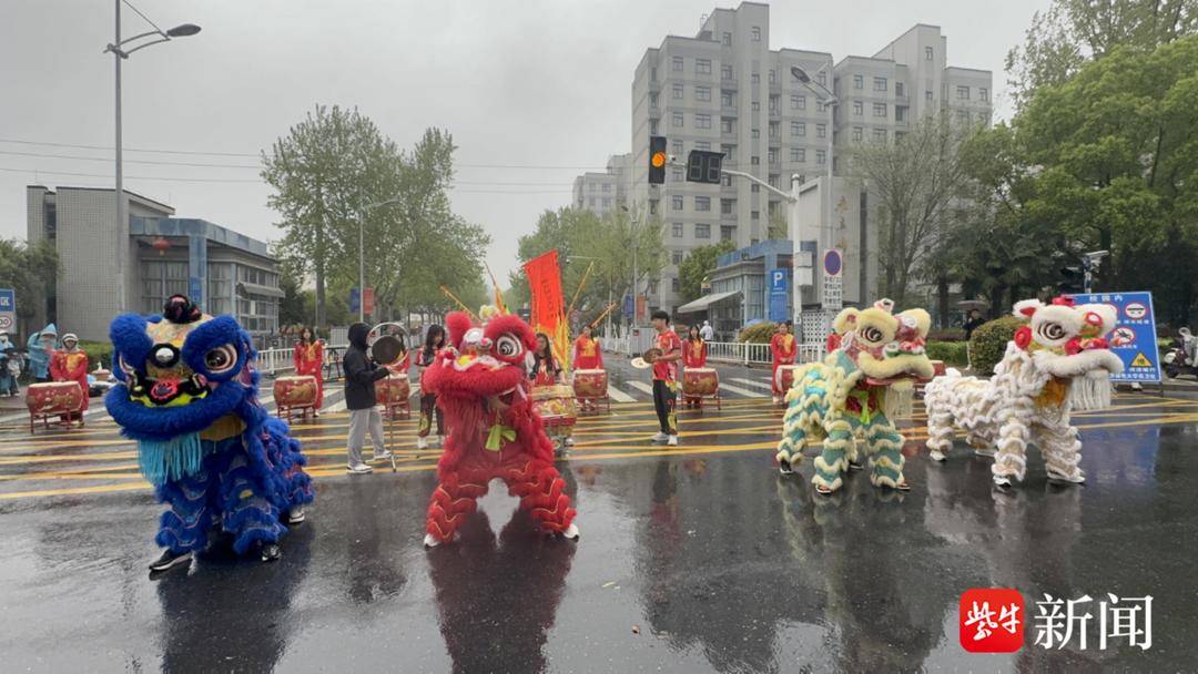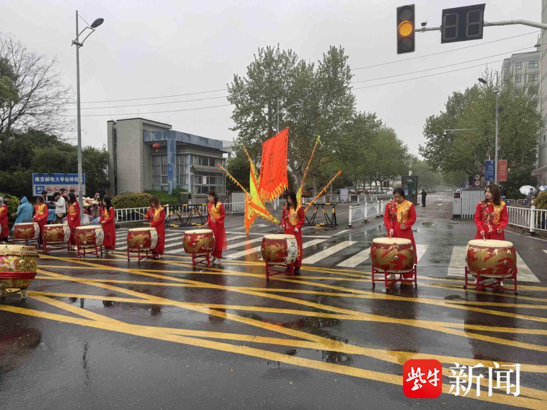 南京邮电大学北门口,南邮龙狮团擂响中国鼓《加油节拍》。金龙跃动,醒狮腾挪,锣鼓声与跑者的脚步声交织成磅礴交响。这群大学生用传统技艺演绎“龙马精神”,为冲刺终点的健儿擂响战歌。
