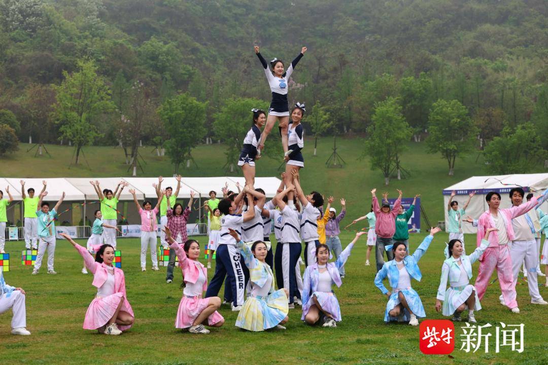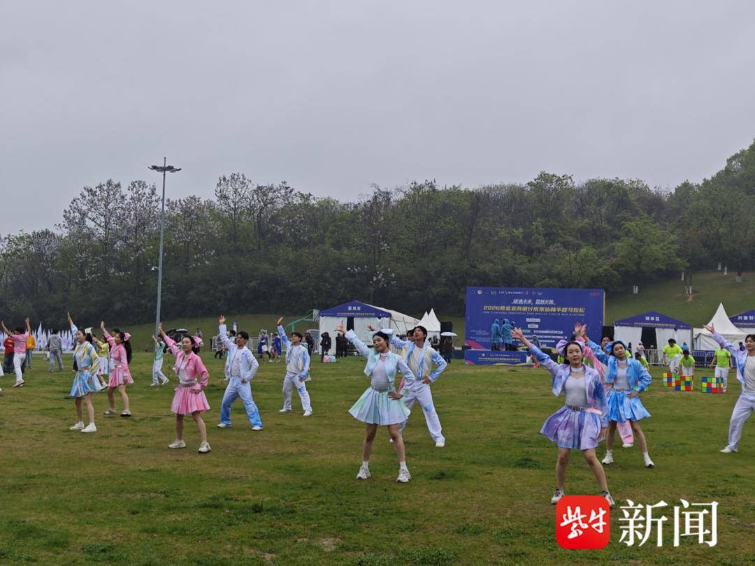 在终点羊山公园草坪,由栖霞区文化馆精心创排,南京邮电大学、南京特教学院、南京体育学院联合辖区青年舞蹈爱好者共同演绎的主题快闪《快乐小马》盛大登场。数十位舞者化身“快乐小马”,在青山绿水间腾跃、旋转、绽放——身姿灵动如音符,每一次跃起都是青春的宣言,每一次挥手都是对坚持的礼赞。