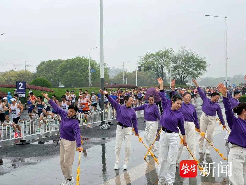 栖霞区文化馆群星艺术团带着非遗莲湘舞《采红菱》亮相九乡河桥北侧。这支成立于2015年的“草根明星”队伍,常年扎根栖霞,将文化精品送到群众身边,为奔跑的选手送上最清新的加油声。