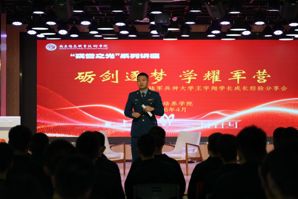 近日,一场走心又接地气的国防教育宣讲活动,在南京信息职业技术学院校园温情开展。陆军兵种大学学员、该校往届定向培养军士毕业学员王宇翔,重返母校登上讲台,以自身军旅成长历程为鲜活教材,与在校学子面对面交流、心贴心畅谈,讲强军故事、解入伍疑惑、传报国情怀,将一颗颗从军报国的种子深深播撒进青年学子心田。