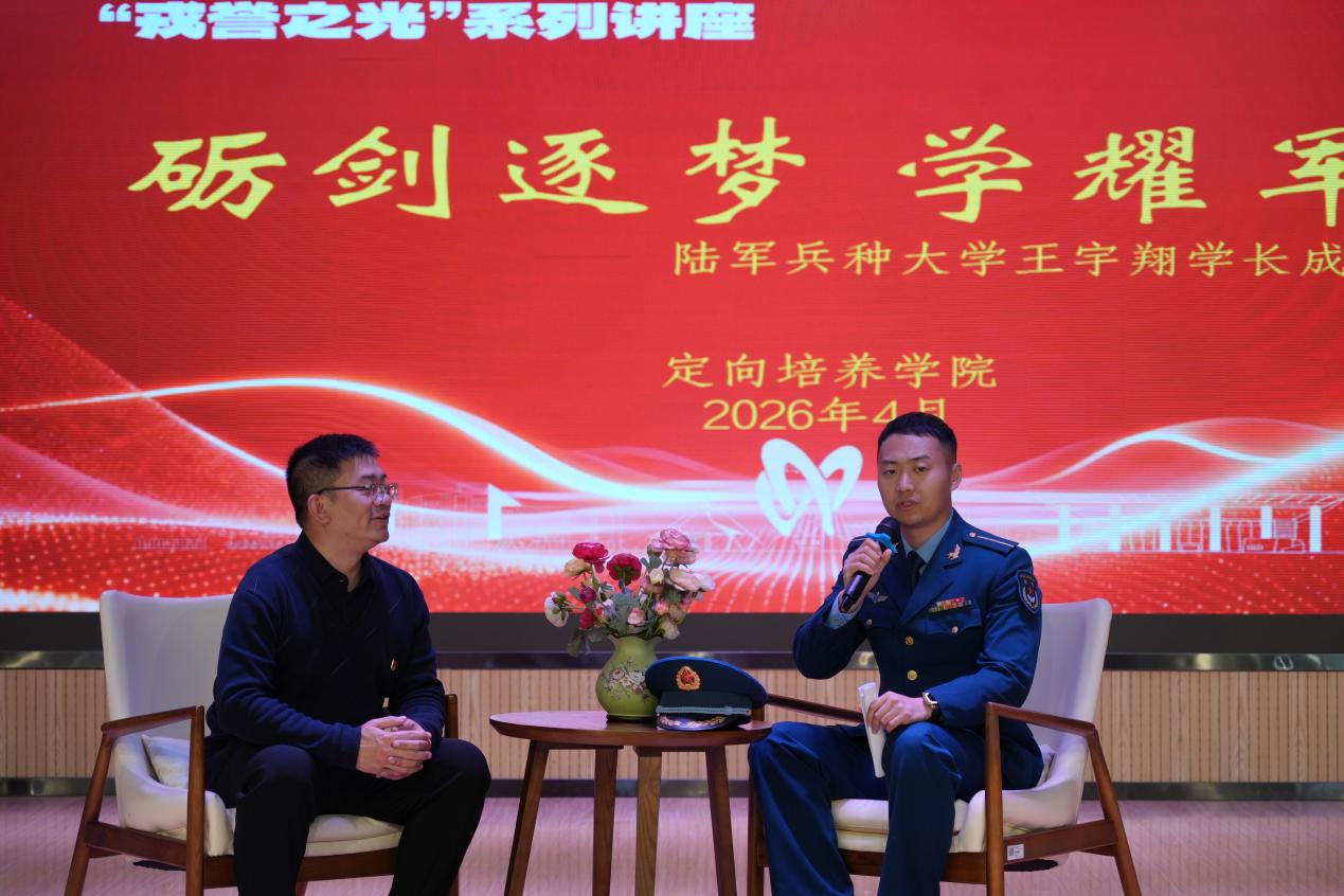 从南京信息职业技术学院的定向培养军士学员,到扎根基层一线、履职尽责的优秀士官,再到凭借过硬军政素质考入陆军兵种大学深造的军校学员,王宇翔一路走来的成长轨迹,正是当代定向培养军士学员们投身军营、逐梦强军的生动缩影。作为陆军高素质军士人才培养的重要平台,陆军兵种大学始终聚焦备战打仗、深耕专业培育,为基层一线输送了一批又一批懂专业、能打仗、肯奉献的骨干人才。宣讲伊始,他没有生硬说教,而是以 “从校园到军营,我的成长之路” 为引,用朴实真挚的语言,分享自己从地方青年转变为合格军人、从基层士官进阶为军校学员的蜕变历程,瞬间拉近了与学弟们的距离。