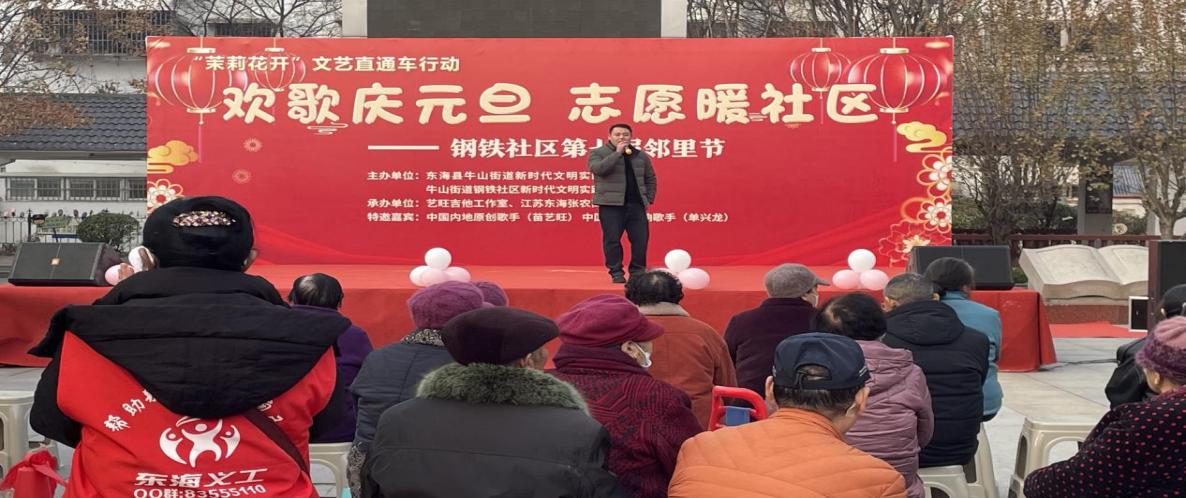 钢铁社区第七届邻里节暨“茉莉花开”文艺直通车行动欢乐开启。本次活动以“欢歌庆元旦 志愿暖社区”为主题,中国内地原创歌手苗艺旺、《中国绝对唱响》实力唱将单兴龙、《抖音网红》实力唱将王红等联袂登台,用歌声传递温暖与祝福。社工和志愿者们还现场开展义诊、义剪等贴心便民服务,并同步进行文明养犬、移风易俗、文明城市创建问卷调查宣传。现场居民踊跃参与,共同在动人的旋律中喜迎新年,在志愿服务的暖意中共筑美好社区。