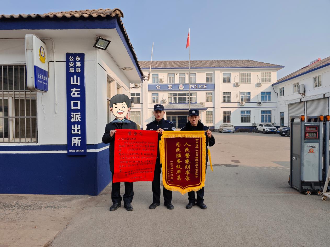 中国江苏网1月2日连云港讯 近日,东海县山左口镇中寨村的刘先生,将一封长一米、宽半米的“超大号”手写感谢信和一面鲜红的锦旗,专程送到了山左口派出所。信上“感谢派出所和刘书豪同志,为人民警察点赞!”“人民警察刘书豪 为民服务效率高”的质朴话语,道出了一位67岁老人对派出所民警由衷的感激之情。