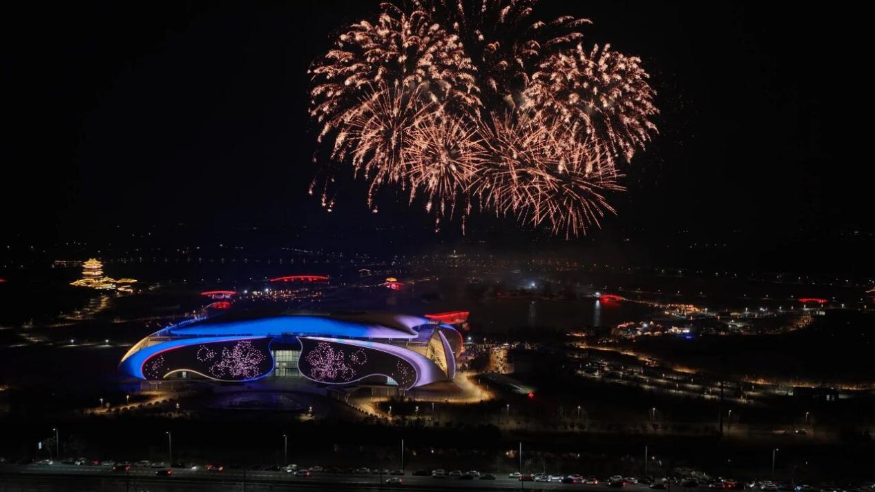 跨年夜的园博园成为“顶流”打卡地,“焰舞港城,大圣启新”跨年盛典吸引3.16万人次参与。市郎图高跷巡游、十余米鱼灯夜游,户外焰火与无人机光影交织变幻,限定蓝色烟花在夜空绽放,千盏孔明灯同步升空,承载着各地游客的新年心愿。与此同时,孔望山巅民谣悠扬,DJ与MC带动全场氛围,电子孔明灯与万家灯火交相辉映;刘志洲山体育公园的脱口秀、篝火电音燃动山谷,零点烟花为跨年夜画上圆满句号。
