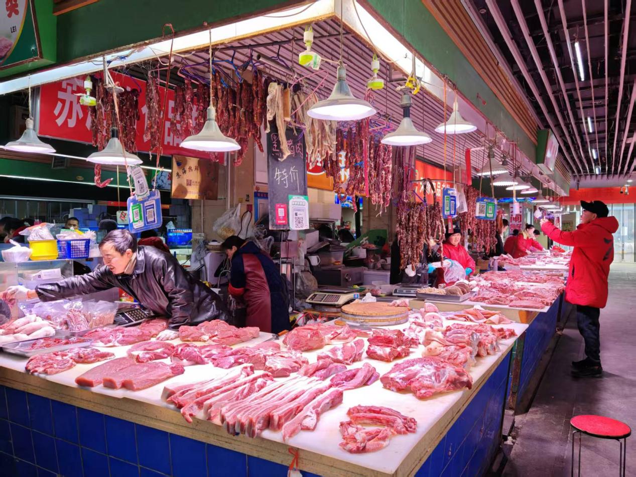 除了春联的喜庆红,香肠的浓郁香更是海州年味的独特印记。城区各生鲜店、熟食铺里,摊主们正忙着制作手工香肠,精选猪后腿肉按比例切分,拌上秘制调料后麻利灌入肠衣,扎绳、摆放、晾晒,一系列动作一气呵成。新鲜灌制的香肠色泽红润,自然风干后香气扑鼻,成为市民年货清单上的“必备品”。