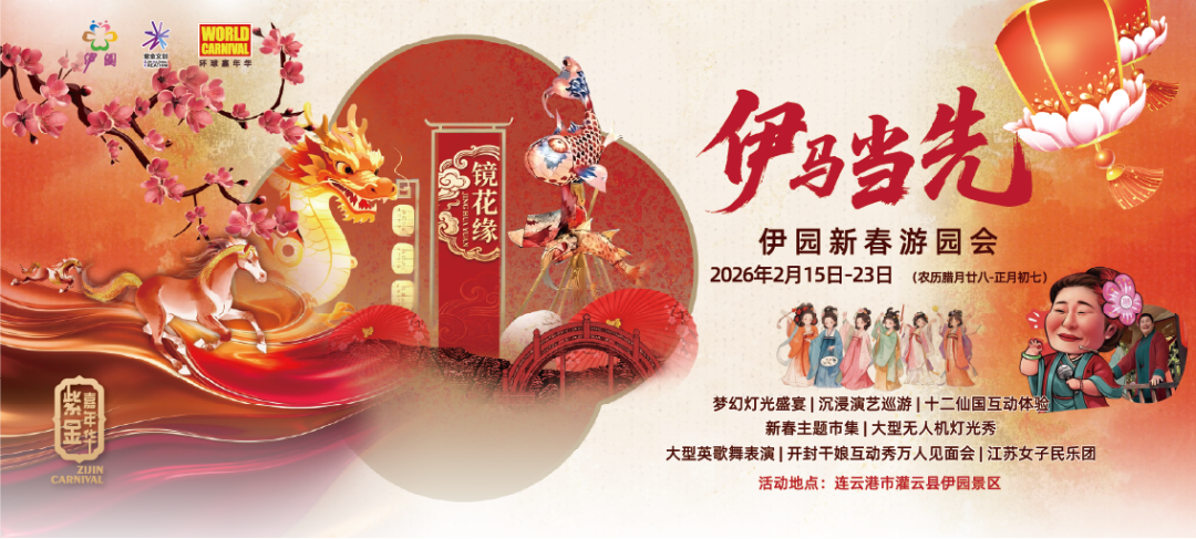 以《镜花缘》十二仙国为灵感融合2026马年春节民俗文化、本土非遗等打造“梦幻灯会+巡游演艺+十二仙国互动体验+主题市集”四大核心板块。