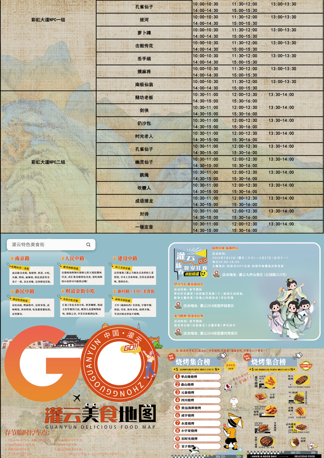2月17—23日(初一至初七)每日上、下午各举办一场民俗非遗文化巡演活动;