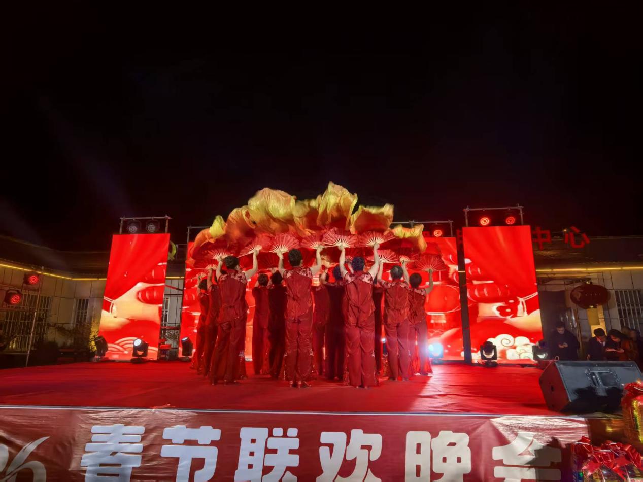 整场晚会高潮迭起、精彩纷呈。舞蹈《哈达》《春满家园》舞姿曼妙、意境悠远;《爱你》灵动活泼、舞态生风。演唱内容兼顾经典传承与时代新风,既有《珊瑚颂》《我的中国心》等红色经典曲目,以真挚的情感抒发爱国情怀,筑牢爱国主义教育根基;也有《苹果香》《平凡之路》等流行佳作,展现了乡村青年的活力与风采;还有聚焦亲情的《最美的歌唱给妈妈听》《爸》等歌曲,一首歌两代人,诉说着同一个“爱”字,歌声中饱含感恩之情,让现场洋溢着温暖的气息。令人瞩目的原创小品《对歌》,从淮海戏到快板,从红歌到流行音乐,嘹亮的歌声伴随着幽默诙谐的表演笑翻全场,引发现场观众阵阵喝彩。大地为台,夜空为幕,晚会在歌舞《难忘今宵》的旋律中圆满落幕,全体演职人员与现场观众齐声合唱,定格下的邻里相聚、阖家欢乐的美好瞬间。