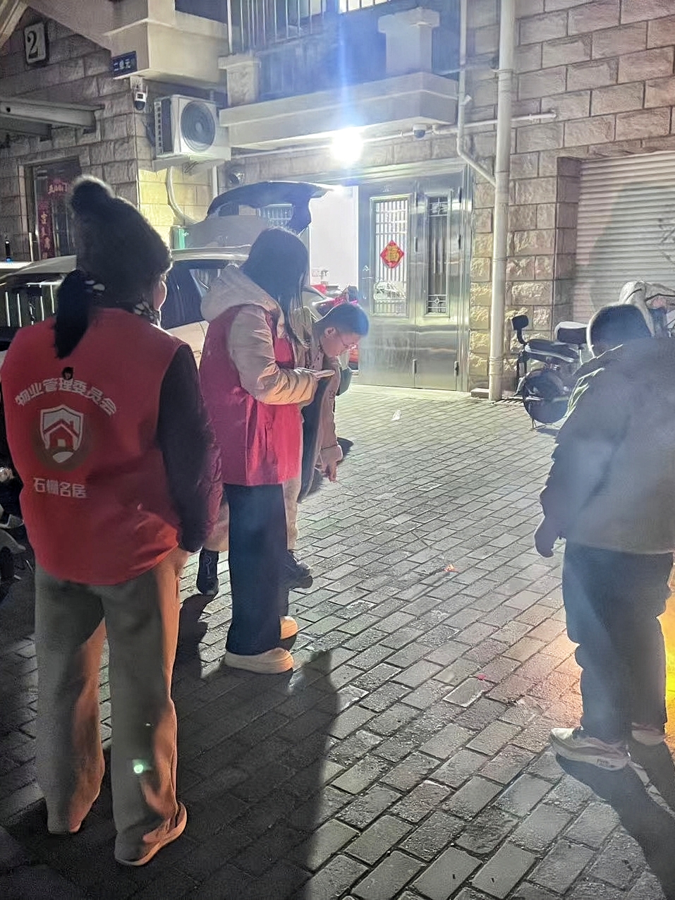 “除夕夜,我们全员在岗,从晚上六点一直巡逻到次日半夜两点。”朐海社区党委书记、居委会主任陶雷表示,“初五和元宵节也是关键节点,我们加密了巡查频次,特别是对小区广场、沿街商铺、车库出入口等重点区域进行不间断巡查。”巡查中,队员们既是“监督员”,也是“宣传员”,一旦发现有试图燃放的苗头,立即上前耐心劝导,讲明政策规定和安全隐患。各巡查小组通过微信群实时反馈情况,街道层面则根据各点位反馈的信息进行统筹协调,确保发现问题能够第一时间响应处置,织密了覆盖辖区的巡查网络。