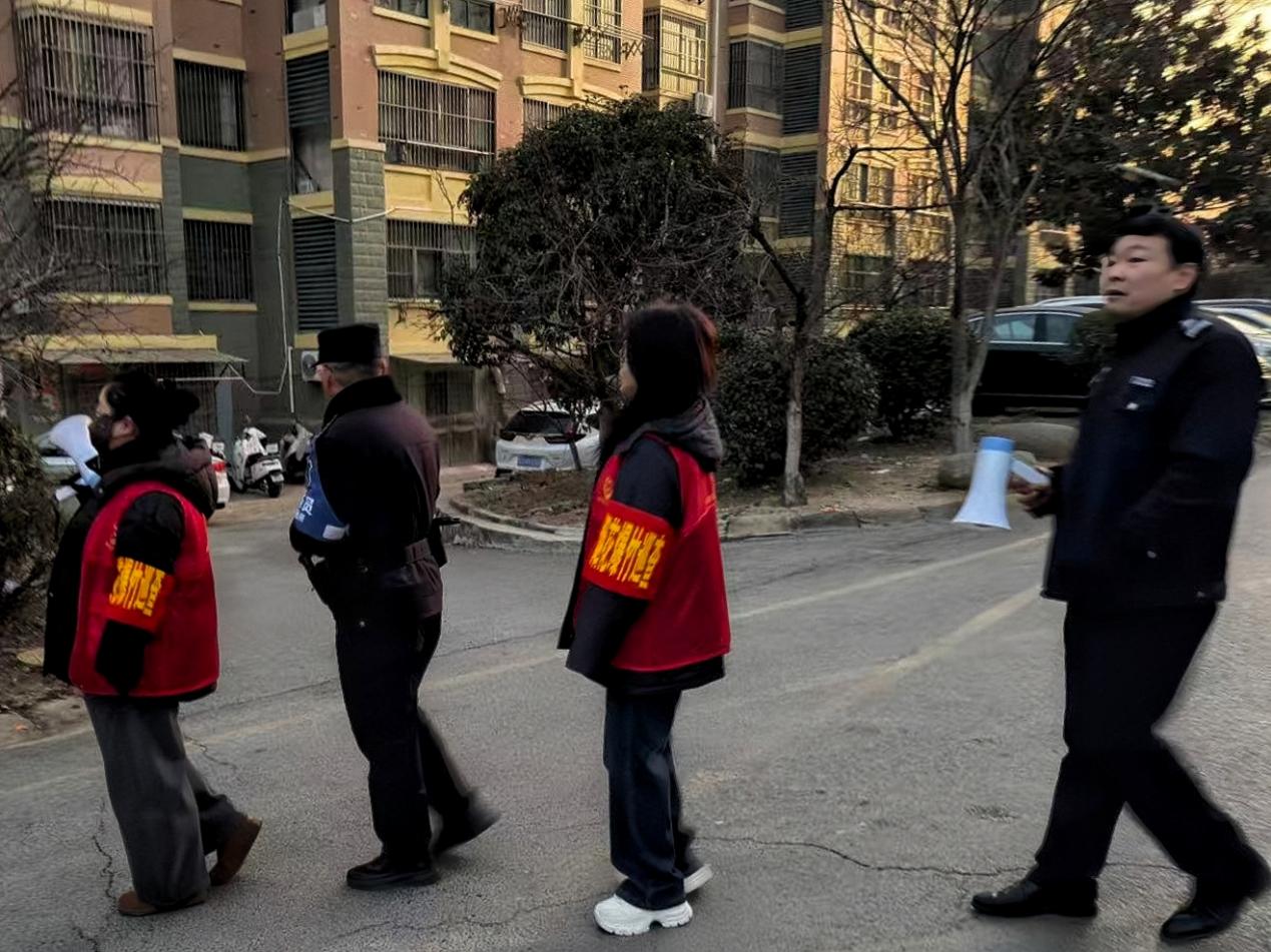 除夕夜、正月初五“迎财神”、元宵节……这些是烟花爆竹燃放的传统高发时段,也是禁燃禁放工作压力最大的时刻。为此,朐阳街道提前部署,整合辖区物业力量,组建了由社区网格员、物业保安、志愿者共同参与的“禁放巡查队”。