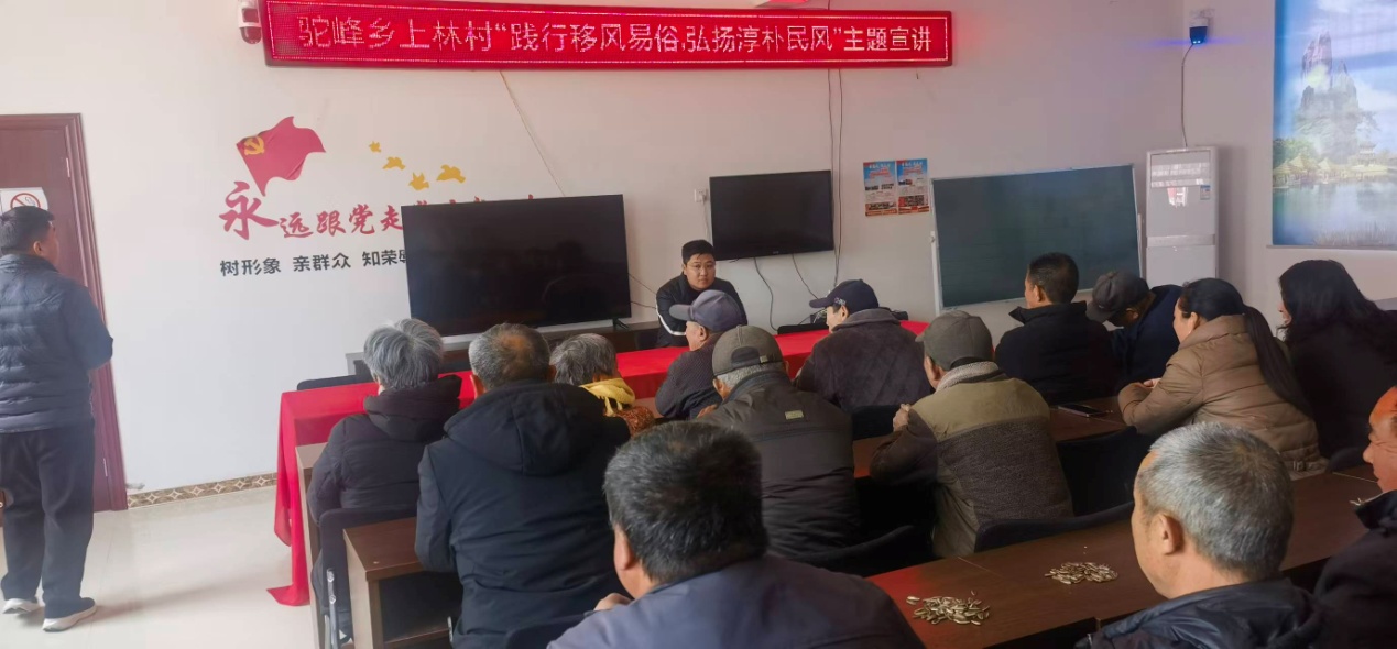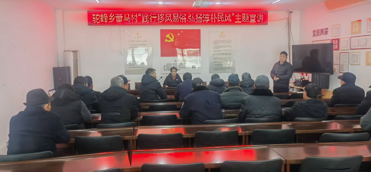 为深化移风易俗、倡导文明新风,驼峰乡充分发挥新时代文明实践站阵地作用,组织志愿者和村干部、道德模范深入董马、古庄,前蔷薇等六个村开展“践行移风易俗 弘扬淳朴民风”主题宣讲活动,将移风易俗倡导内容通过聊天、讲座的方式进行宣讲,变书面语为家常话,通俗易懂。